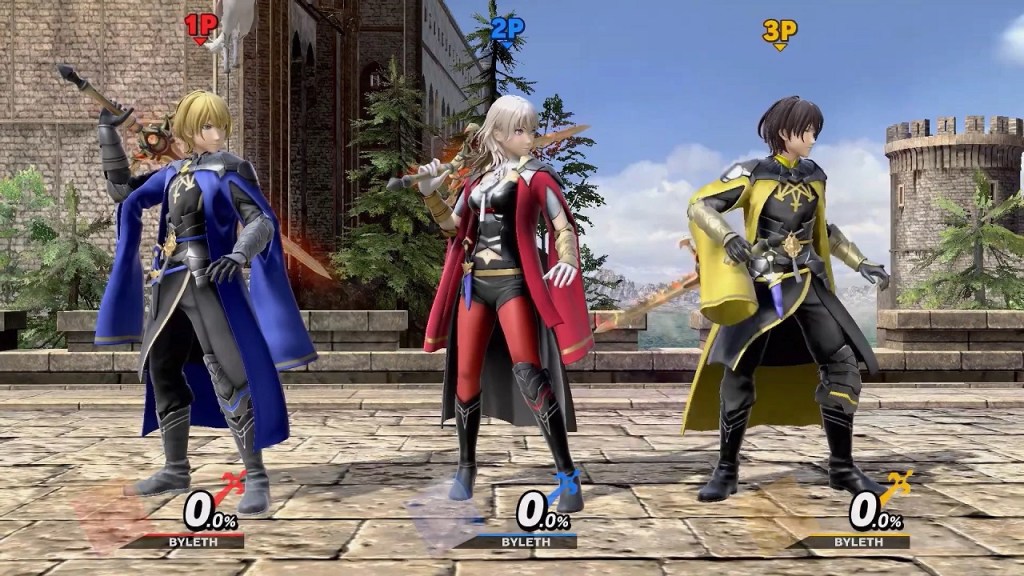Byleth comes with a new stage and music based off Fire Emblem Three Houses. There’s a few arrangements for the main theme of Three Houses, but the rest of the music is pulled straight from the game. They sound great and will speak to those who have played it beforehand. The new stage makes frequent transitions between areas that players will recognize from the game, as well as notice a few cameos from the key players from all three main houses. The layout of each section in the stage differs, making the melees and duels you have very tense. There’s not many gaps you can fall into, except during the transitions between areas, so you’ll constantly find yourself trying to push opponents out to the side for knockouts.